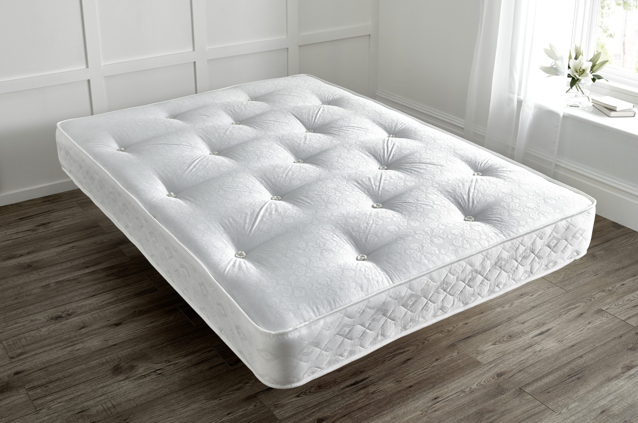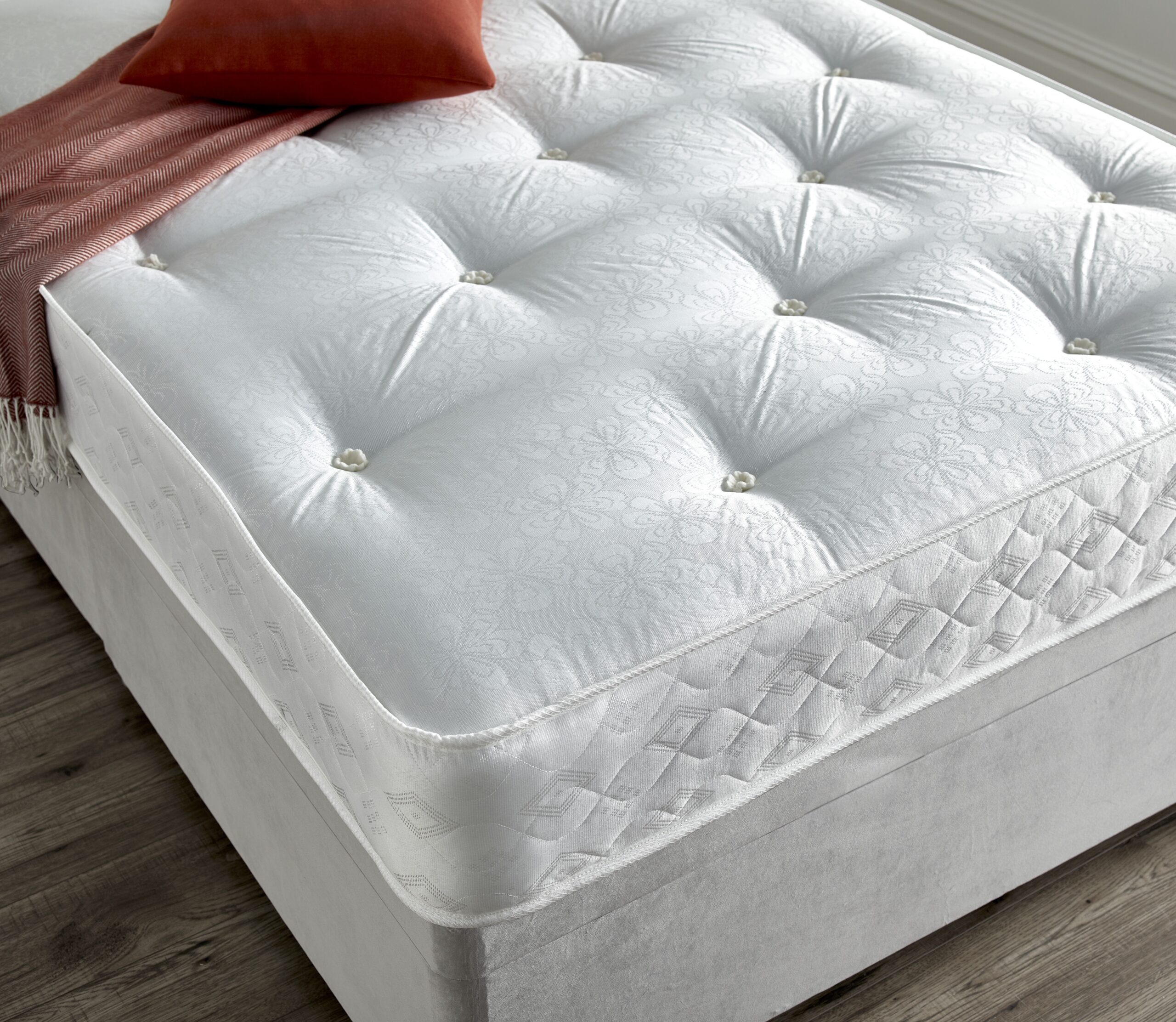 The Parma Mattress is a reliable and comfortable option that offers excellent value without compromising on quality. Built with durable 13.5G Bonnell springs, it provides firm, consistent support, while the hand-tufted finish ensures long-lasting shape and stability. Upholstered in a luxury fabric for added comfort, the dual-sided design allows for regular turning to extend the mattress lifespan—making the Parma Mattress a great budget-friendly choice for everyday comfort and dependable support.